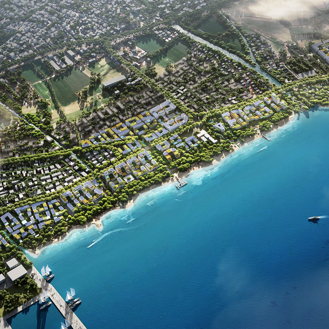 Społeczność nadmorska XXI wieku zaprojektowana z myślą o zrównoważonym życiu i pracy na Cyprze.