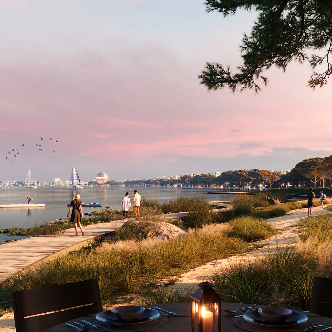 Land of Tomorrow to wyjątkowe miejsce, w którym nowoczesność spotyka się z troską o naturę. Projekt powstał z myślą o podnoszeniu wartości ekologicznej i tworzeniu harmonijnego, tętniącego życiem nadmorskiego portu przyszłości.